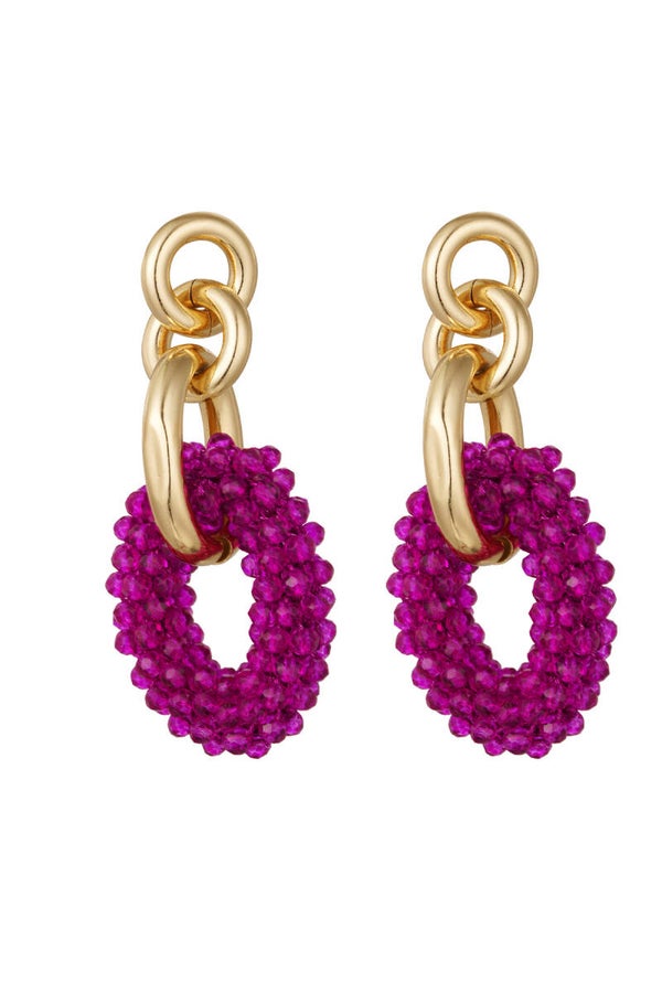 De oorbellen shop je in de kleuren: koraalrood - fuchia - roze - zwart.