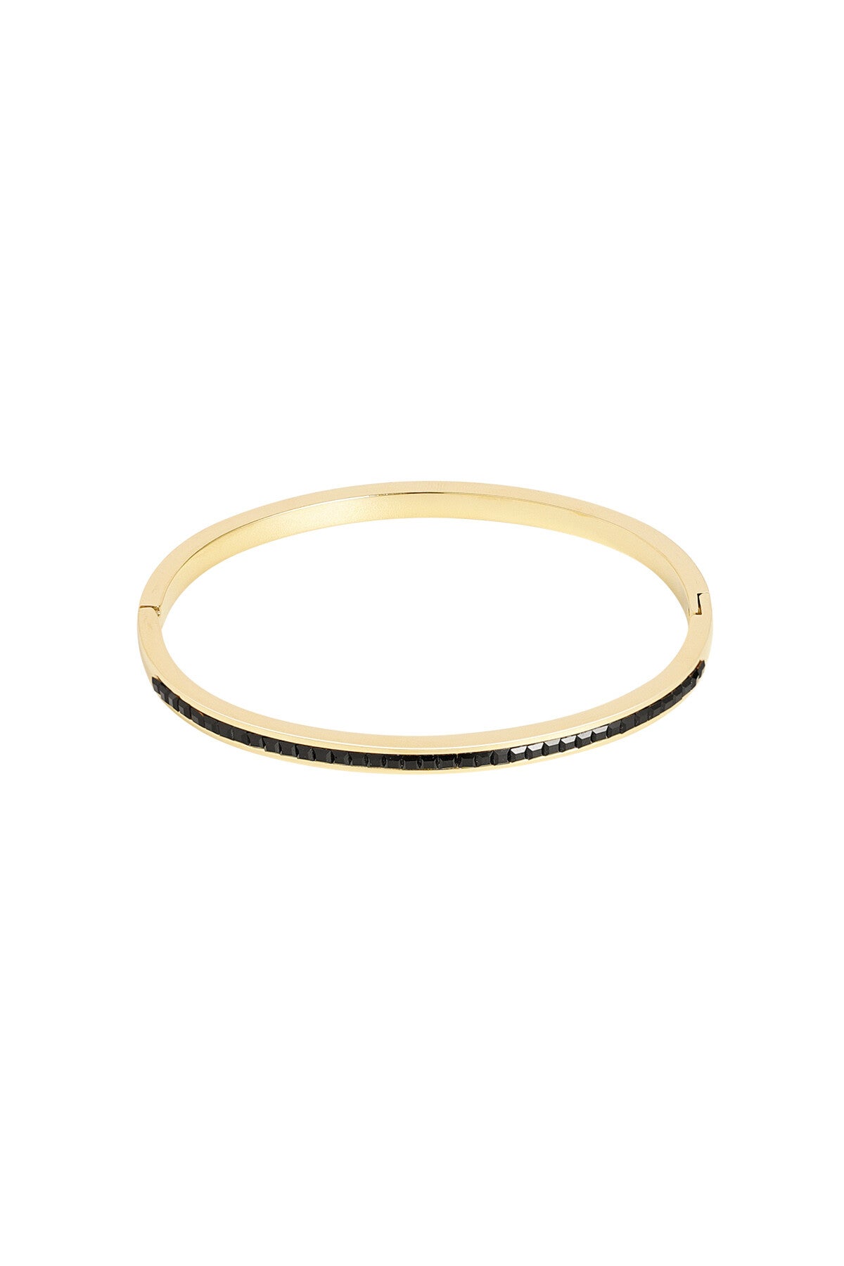 Hoe tof is deze gouden slavenarmband met een dun streepje van zwarte steentjes!