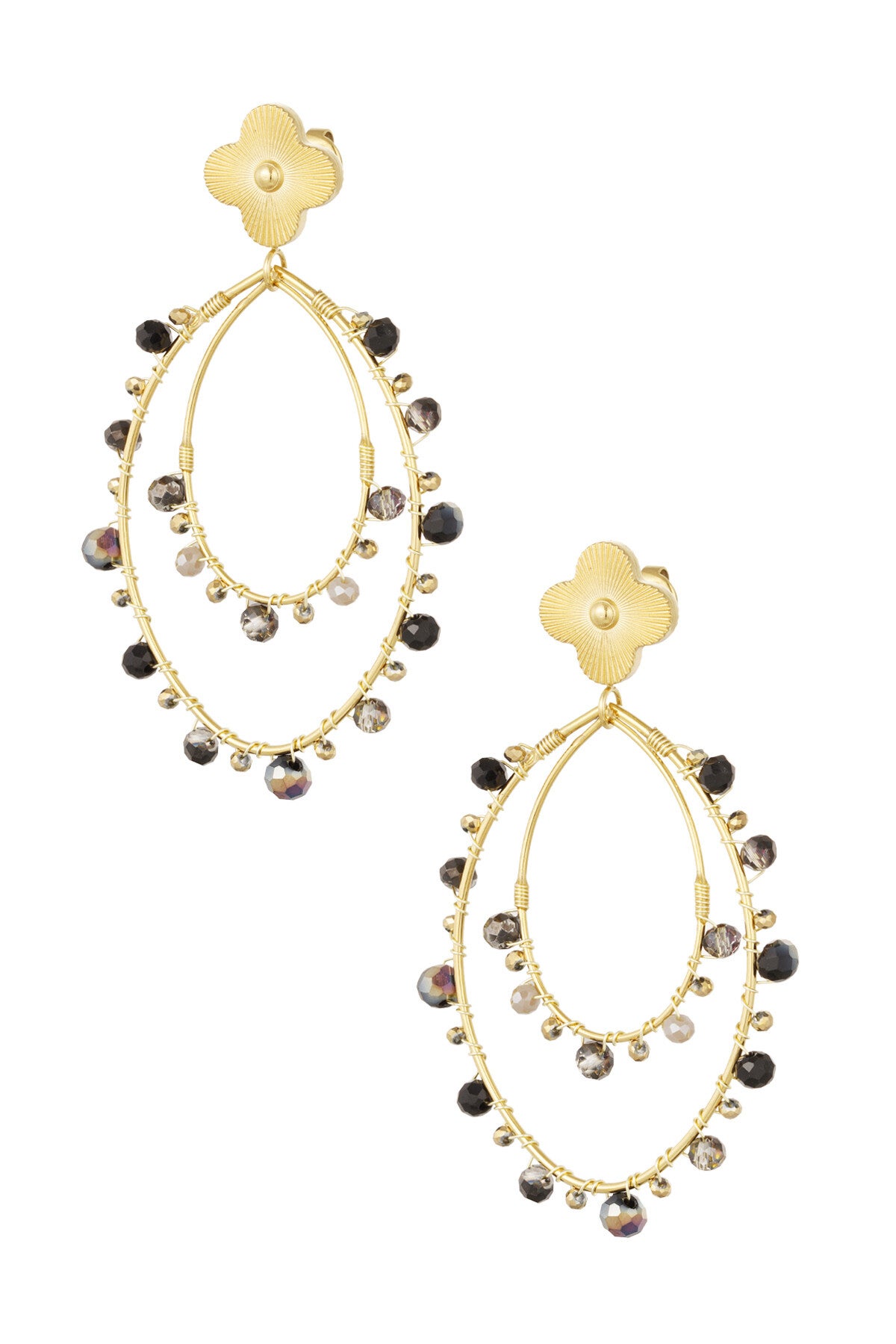 Oorbellen ovaal met kraaltjes - goud/zwart/grijs