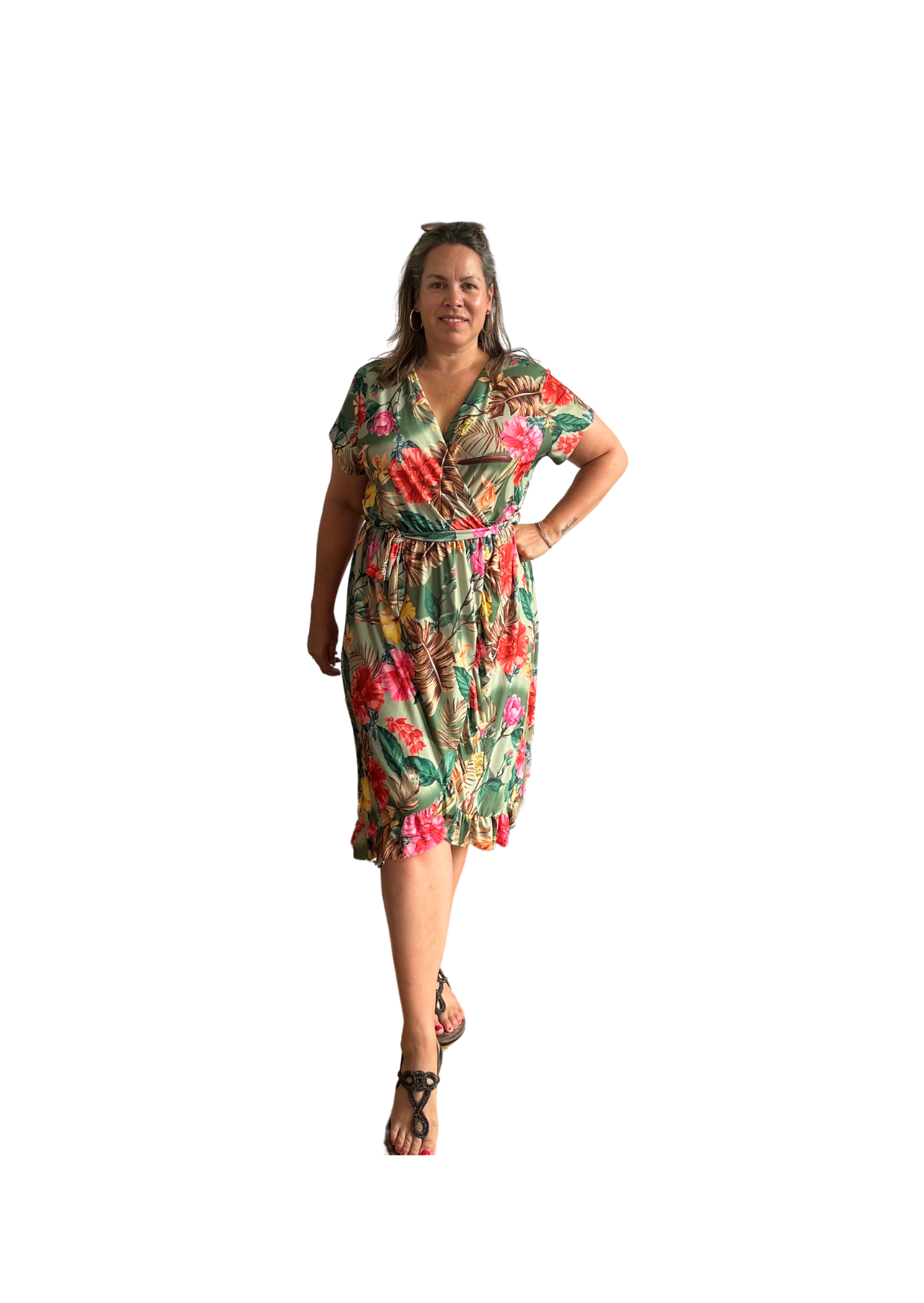 Valt top op de knie aan de voorkant en is aan de achterkant langer. Het elastiek en de V-hals benadrukken de juiste plekken. En de ruffle aan de voorkant is een leuk detail.