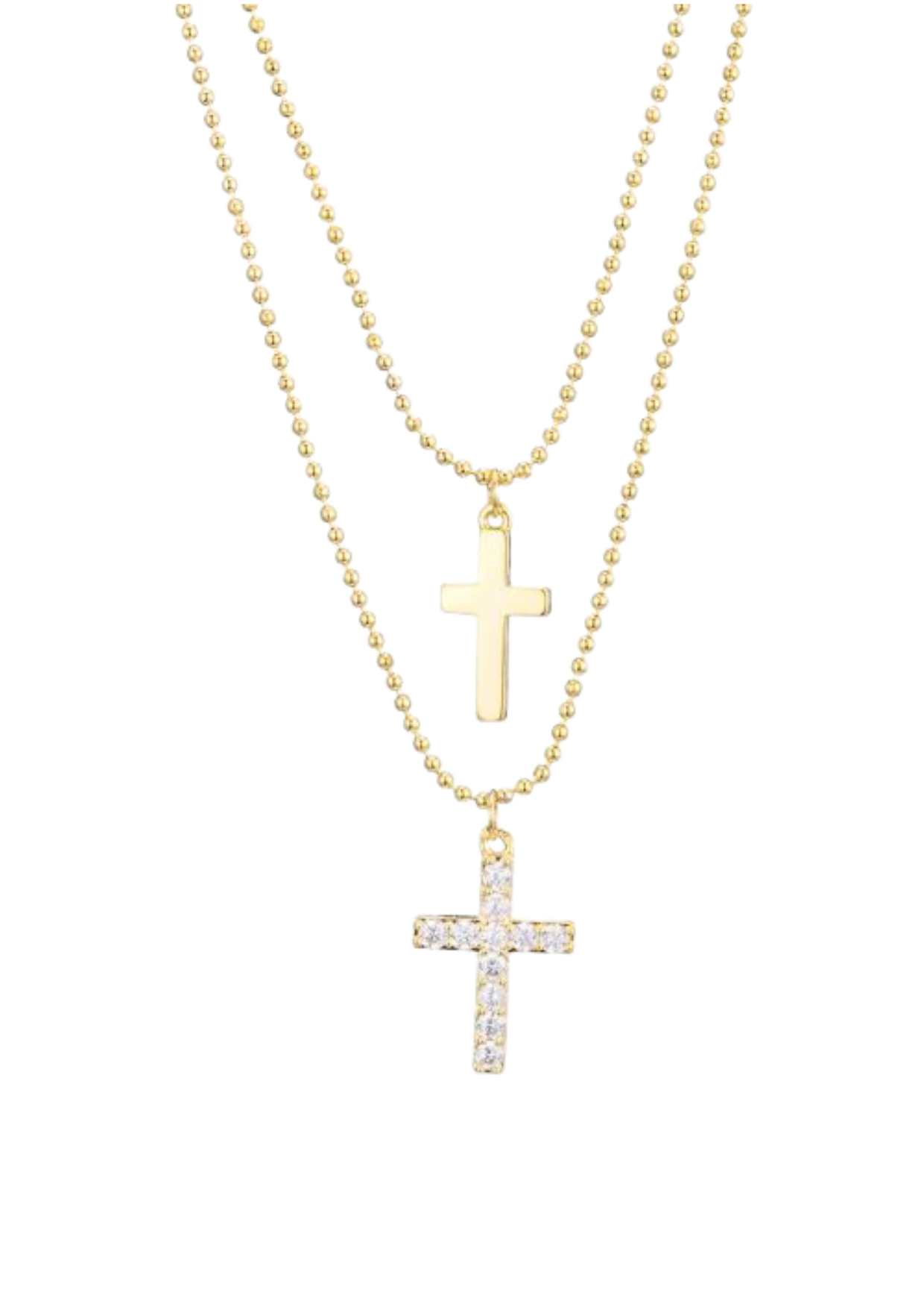 Mooi fijn dubbel kettinkje met 2 verschillende kruisjes eraan.