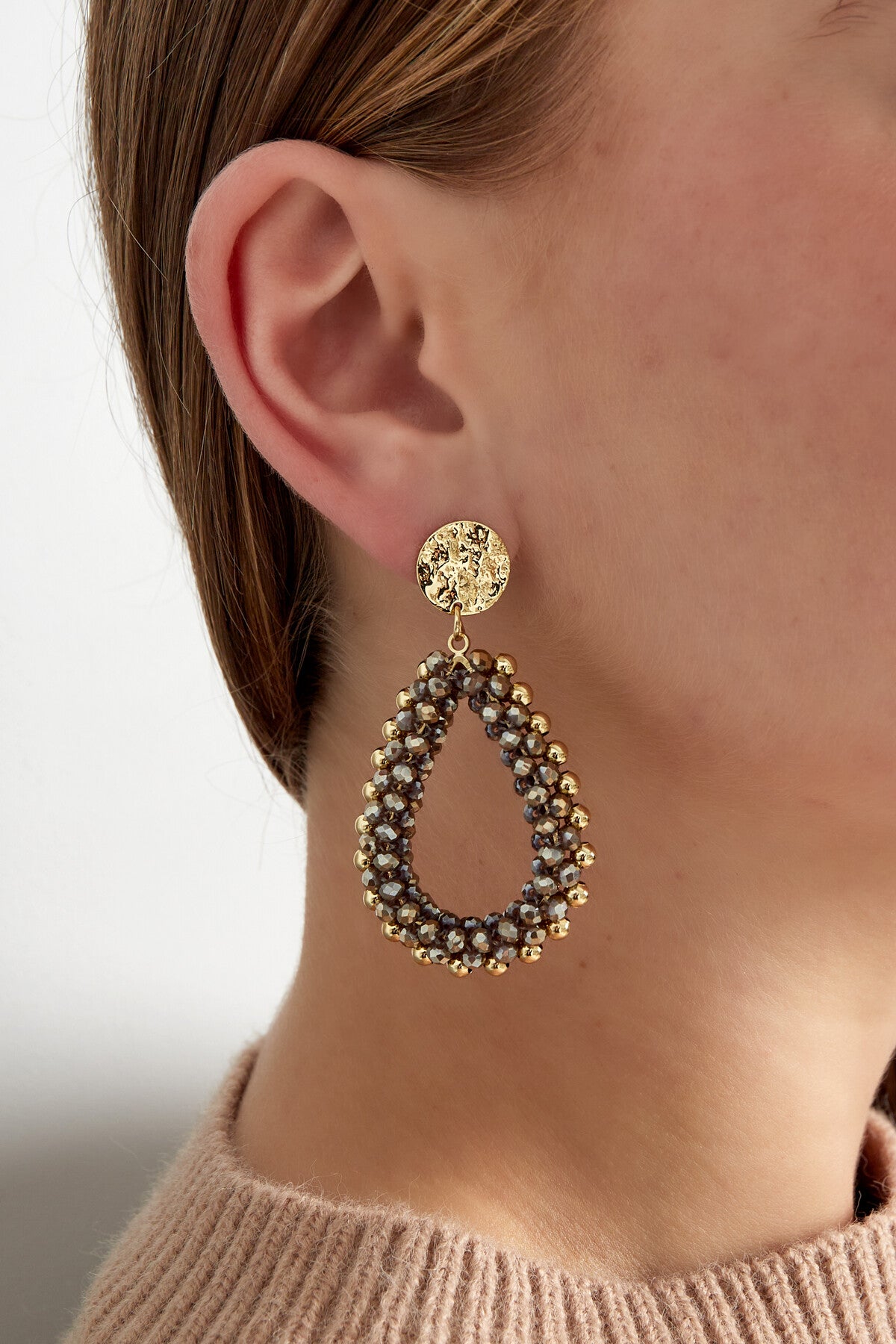 Deze prachtige druppel oorbellen zijn is de musthave kleur van dit seizoen. Grijs echt prachtig.