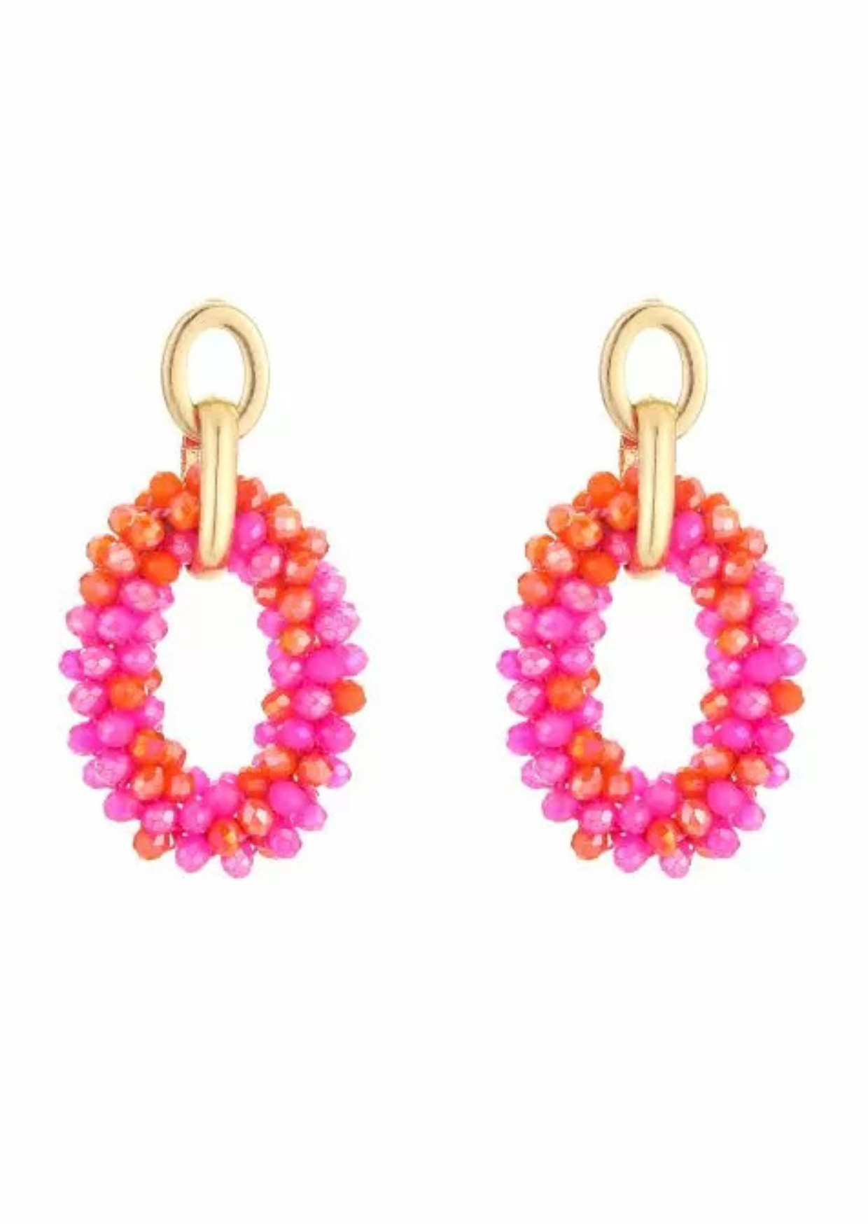 Mega vrolijke roze/oranje oorbellen. Echt hier gaat ons hart sneller van kloppen. Lekker fel gekleurd!