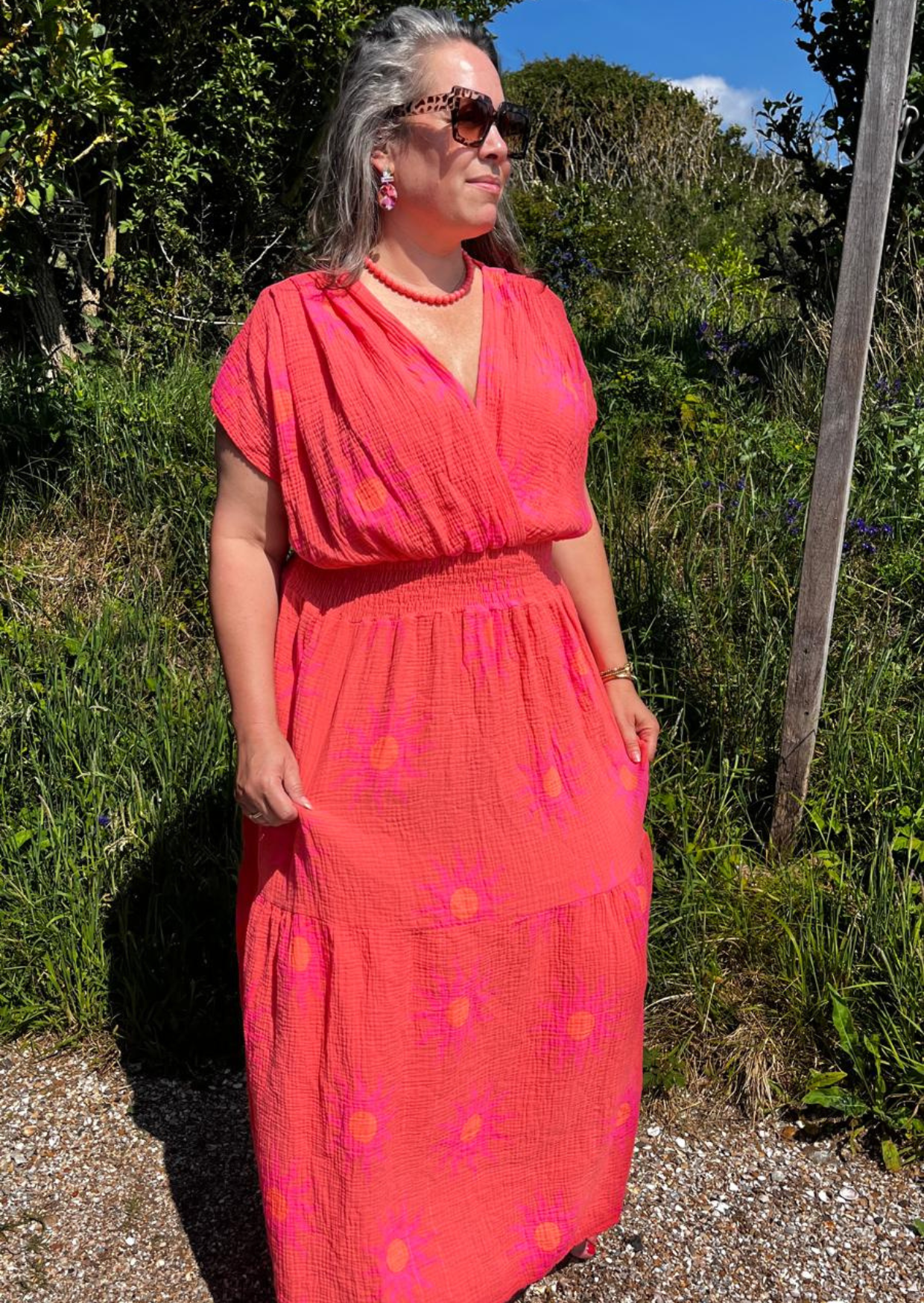Deze jurk is prachtig! Lekker lang en gemaakt van mouseline stof (zacht wafeltjes katoen). Onesize en draagbaar van maat 44 t/m 50.