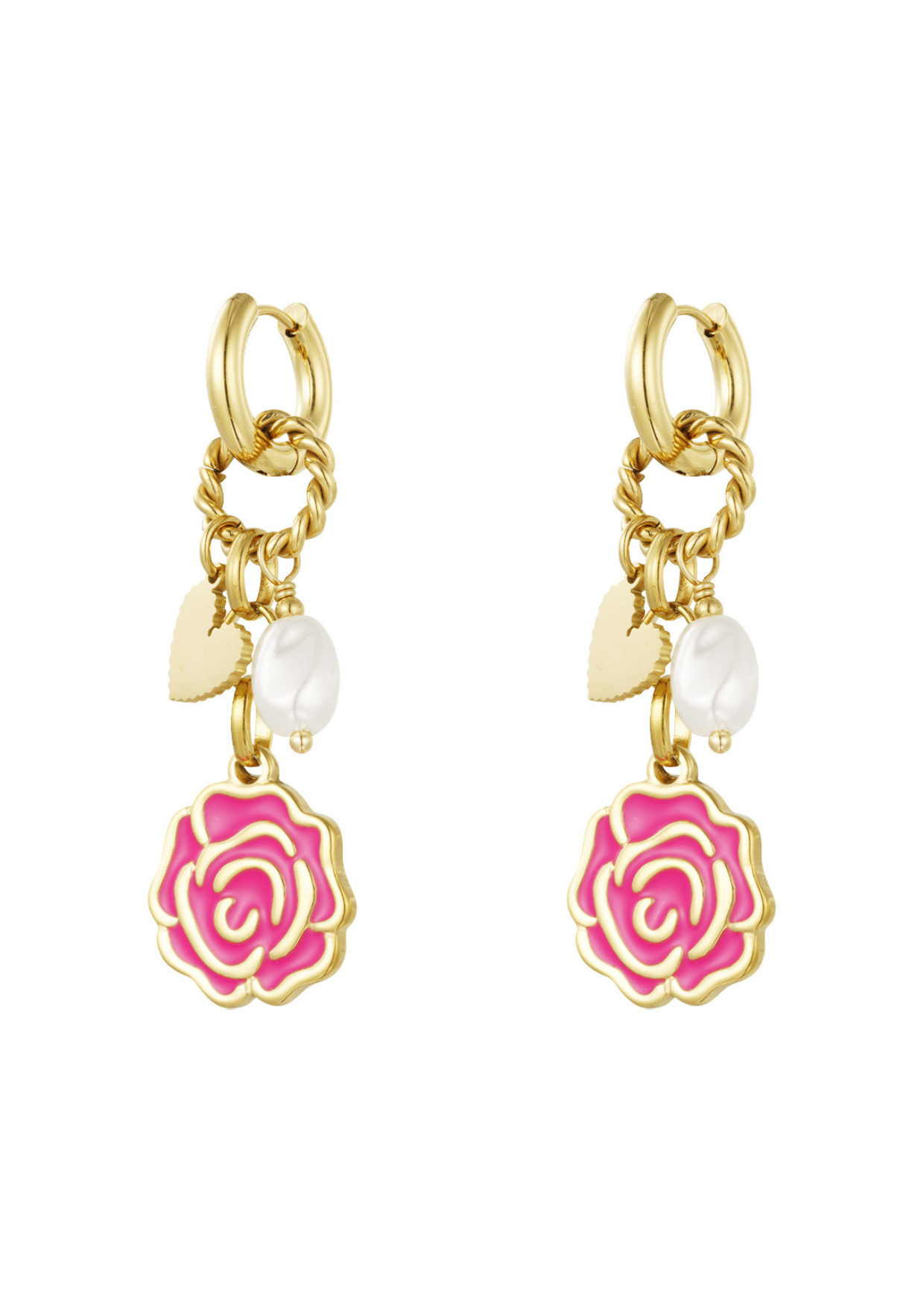 Het overige materiaal is: emaille, hematite en imitatie parel.