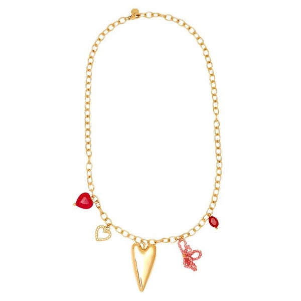 Super mooie bedelketting met bordeaux en roze accenten.