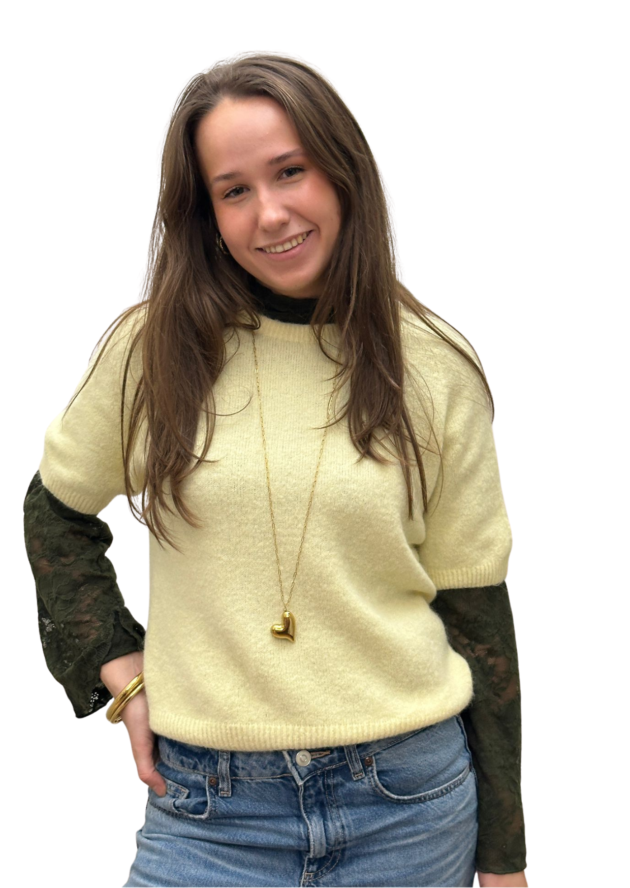 Hoe mooi is deze kanten top. Met prachtige bloemetjes en een trompet mouw. Leuk om zo te dragen of onder een korte mouwen trui of blazer.