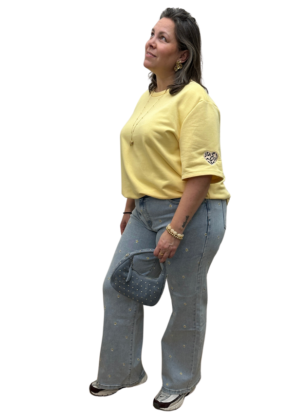 Superleuk basis shirt met een panter hartje op de mouw en hoog op de rug ook een kleintje.