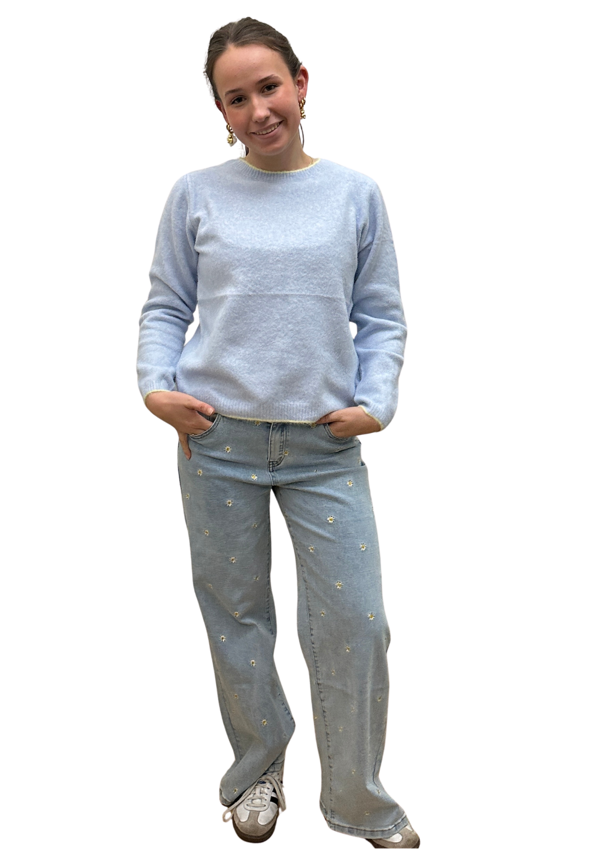 Hoe cute is dit truitje met de gele strikjes op de rug.